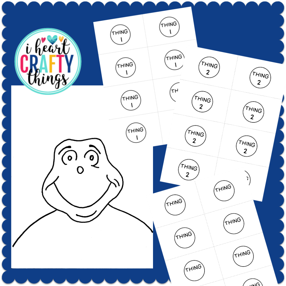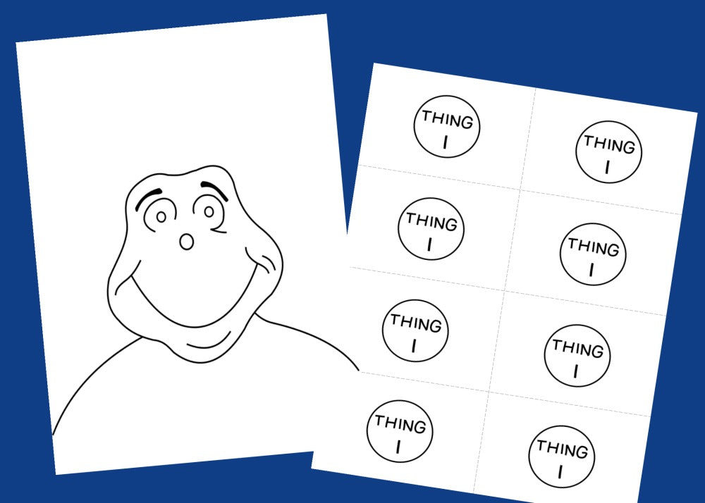 Children drop blue liquid watercolors around the face of Thing 1 or 2 and use a straw to blow the watercolors around the paper to create crazy hair. Full instructions are included with the craft template. We've also included a variety of Thing 1 badges to use in different ways. This fun Dr. Seuss craft would be darling hung up on a bulletin board or classroom display to celebrate reading and Dr. Seuss.