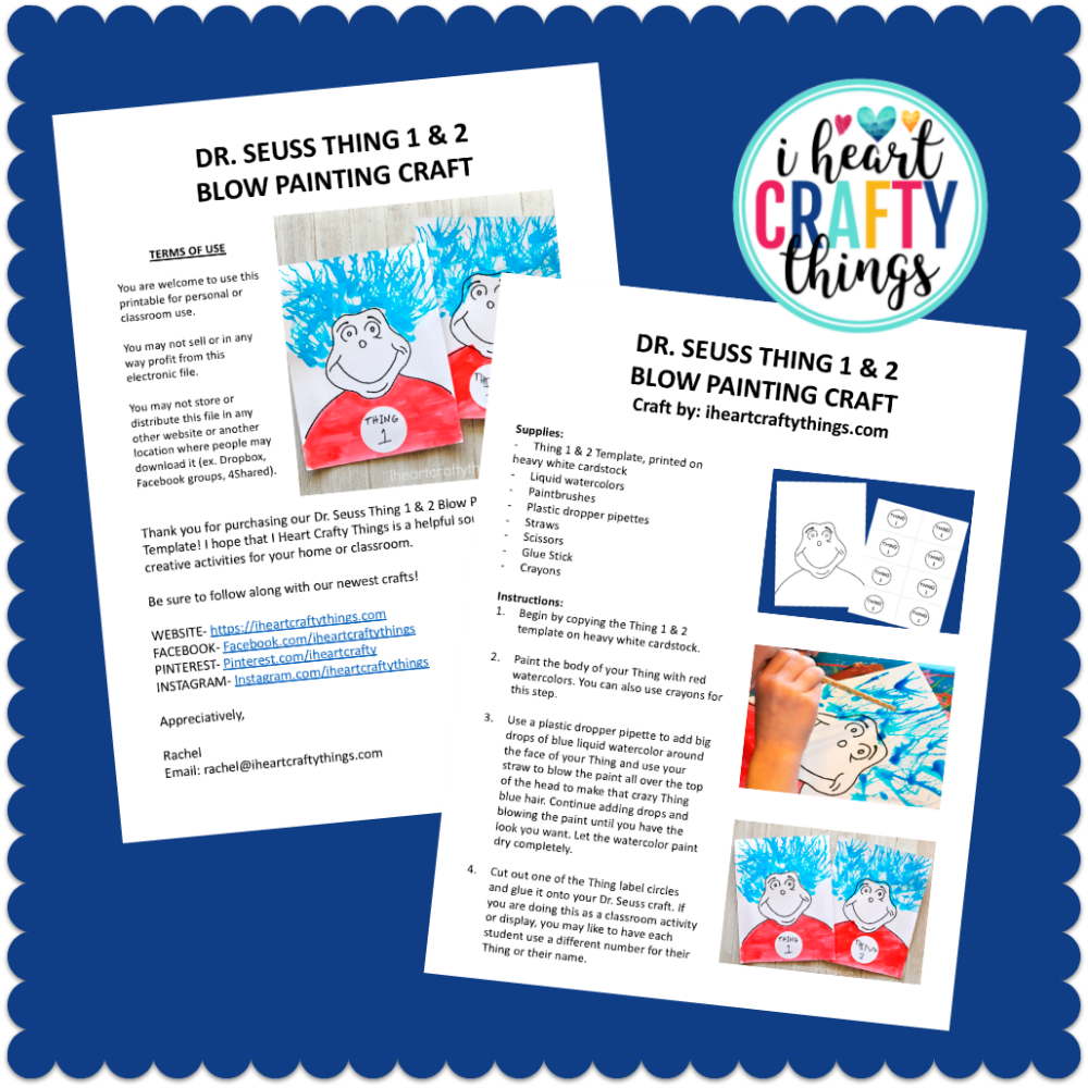 Dr. Seuss Craft - Thing 1 and Thing 2 Blow Painting Art Activity