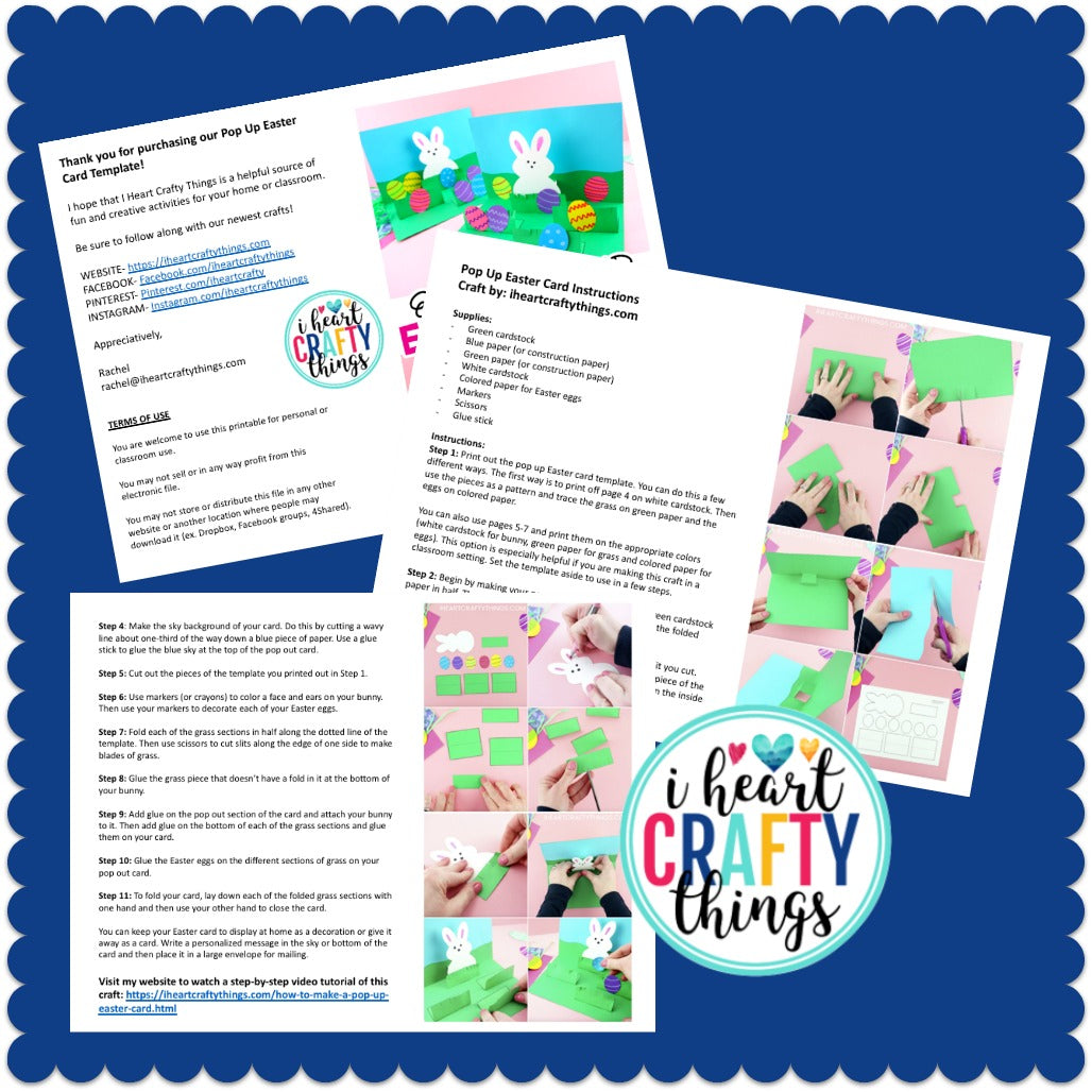 Included with the pop up card template is how-to instructions and helpful tutorial photos. The template includes a page with the entire pattern on it for easy printing or we also have individual pages for each piece of the template for easy classroom use. You can watch a step by step video on our website of how to make the pop up Easter card.