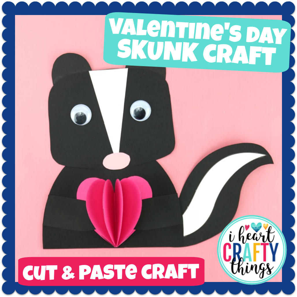 This cute skunk craft is easy for preschoolers and elementary school students to make. We designed the craft for Valentine's Day, with the skunk hugging a 3D heart, but you can leave the heart off the project and make the animal any time of the year.