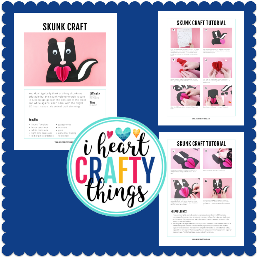 Looking for more fun animal crafts? This skunk template is included in our Valentine's Day animal crafts pack so you can get it, along with four additional animal crafts, for only $4.99. That's more than 50% off! Click the image below for more information on the template pack.